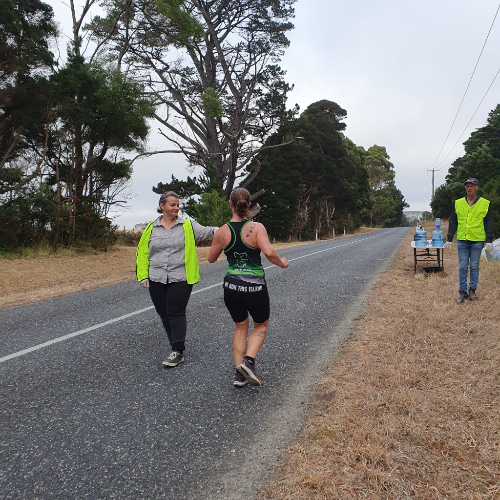 The feature event is a 32km (20 mile) solo handicapped race from Naracoopa on the East Coast and finishing in Currie. The undulating course takes you across the island, which is supported by partial road closures and transport to the start line with numerous drink stations (every 4km). This year the first walker/runner set off at 7am and the last one at 8.57am, with the target time to finish being 11.15am.